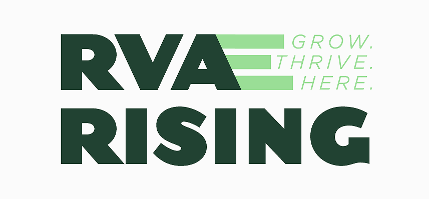 The boldness of the typeface represents strength and confidence, while the italicized elements imply progress and forward momentum. The vibrant colors and deep green enhance the overall theme of rising and moving forward. Together, these elements convey the message of unity and growth for RVA.